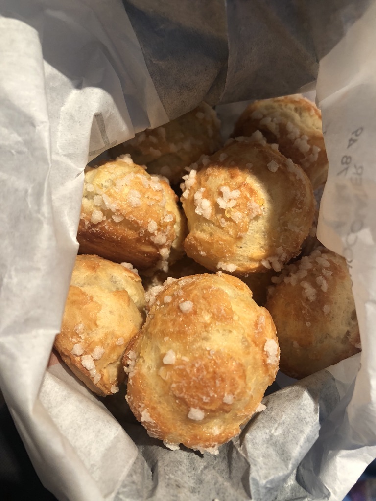 After class I was, of course, excited to keep eating choux. I wanted more chouquettes, because I hadn’t tried any in the wild yet and they are covered in delicious pearl sugar. Pearl sugar has a nice crunchy texture, and its pretty rare to see it in the U.S for some incomprehensible reason. Pro tip – when you order chouquettes, you order by grams. Just say you want 100 grams.
