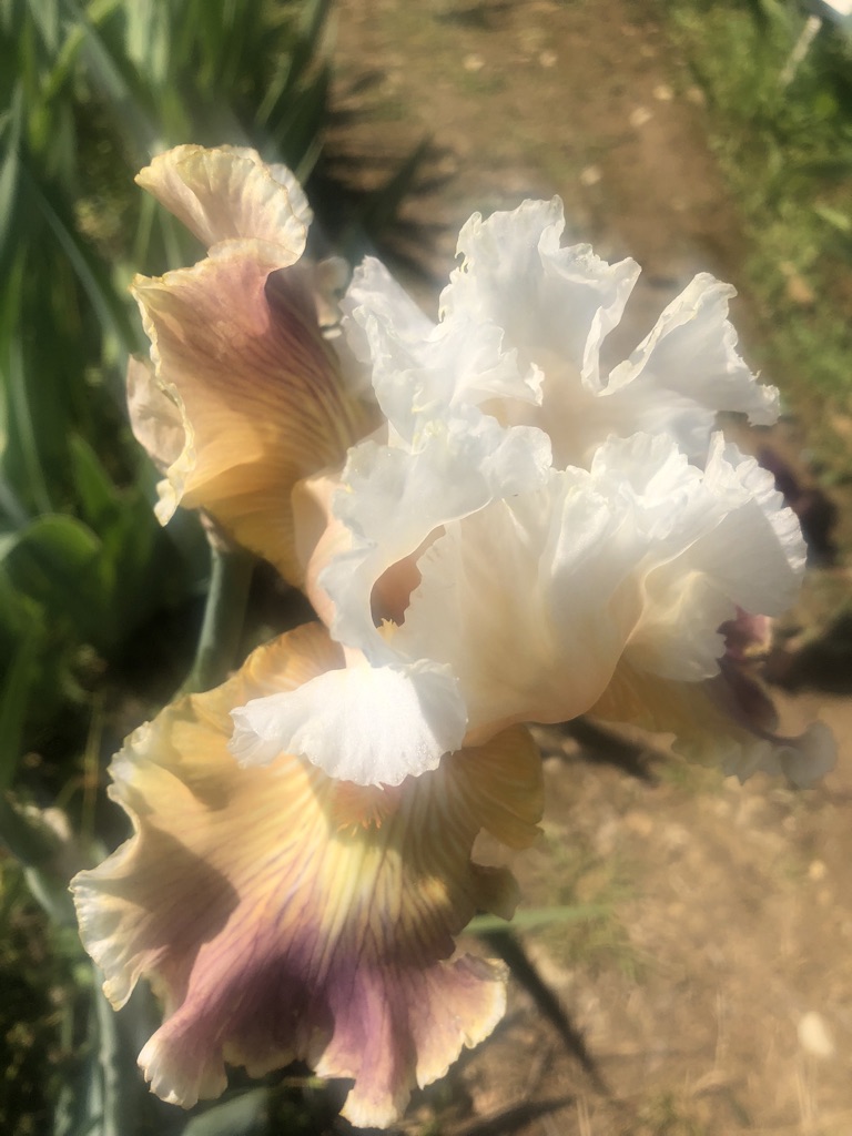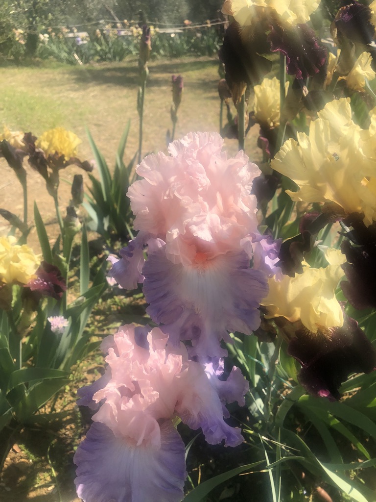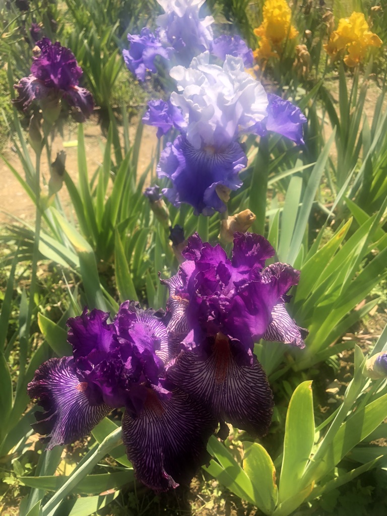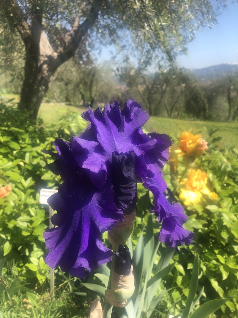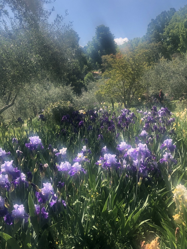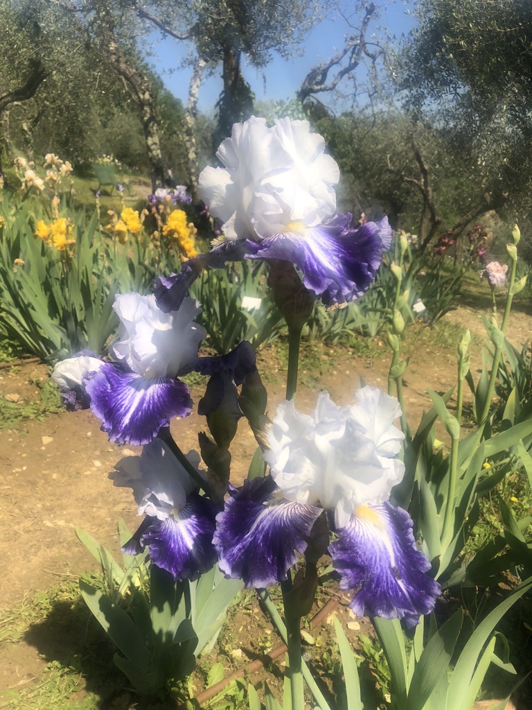 The iris garden is incredible. There are 1,500 species of iris! It is on a hill sloping North East, dotted with olive trees and large sprays of iris. In parts of the garden, the iris are planted in large groupings by color, creating a nice flow and rhythm in the garden. For example: