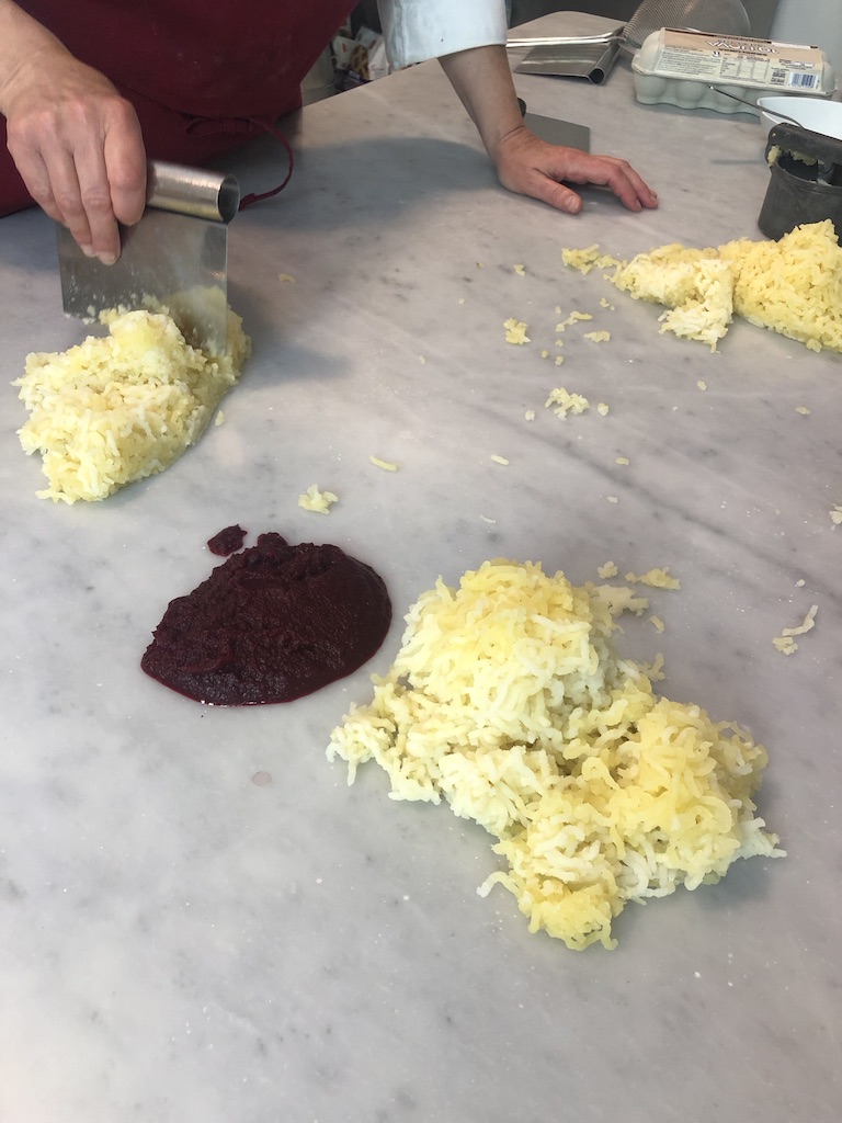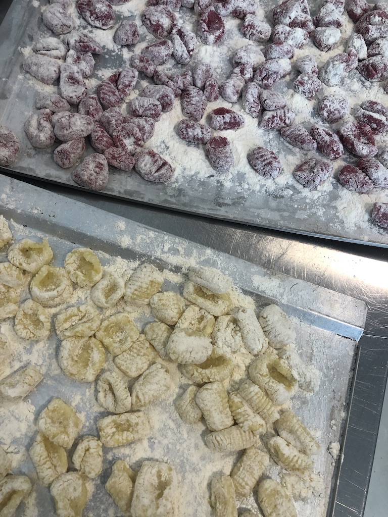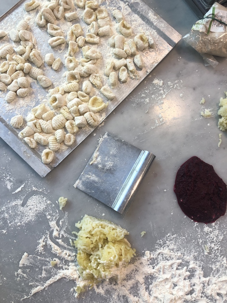We made all kinds of crazy gnocchi – normal potato, beet, spinach and ricotta, chestnut, and one with a choux dough.