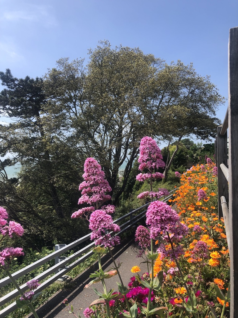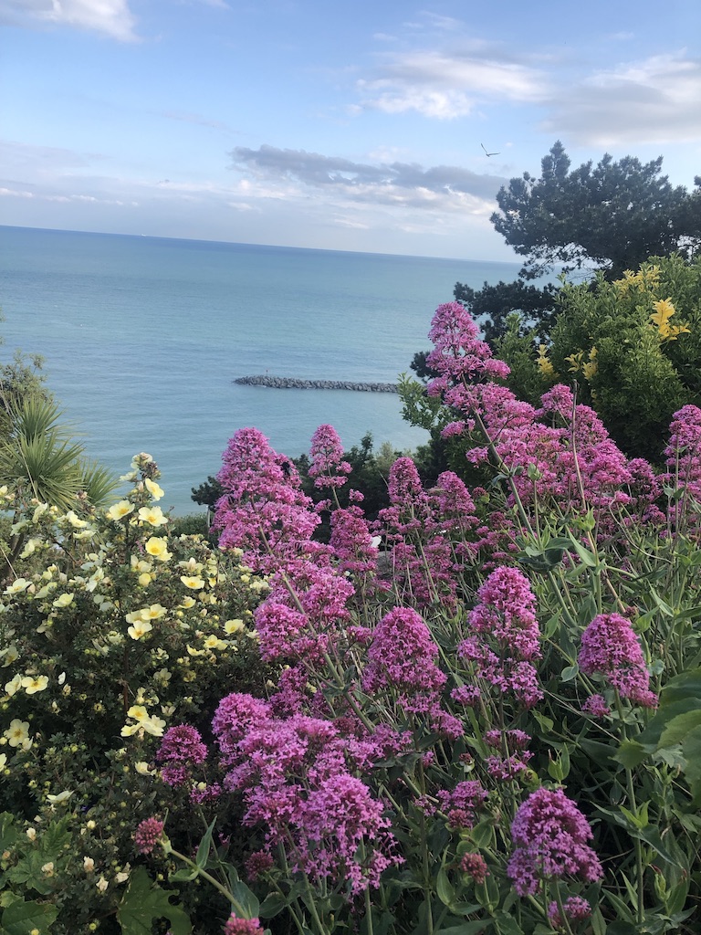 Folkestone feels like the place they would have gone in Downton Abbey to get away from the stress of running a country estate. Our hotel sat back from a cliff overlooking the English Channel. A lovely promenade called The Leas runs all along the cliff. As you walk towards town on The Leas, the sea is on the right, Victorian homes, hotels, and large green lawns are on the left. The cliffside is a maze of paths and stairs that lead down to the ocean. At the base of the cliff are colorfully painted beach huts, and a miles-long red-pebble beach.