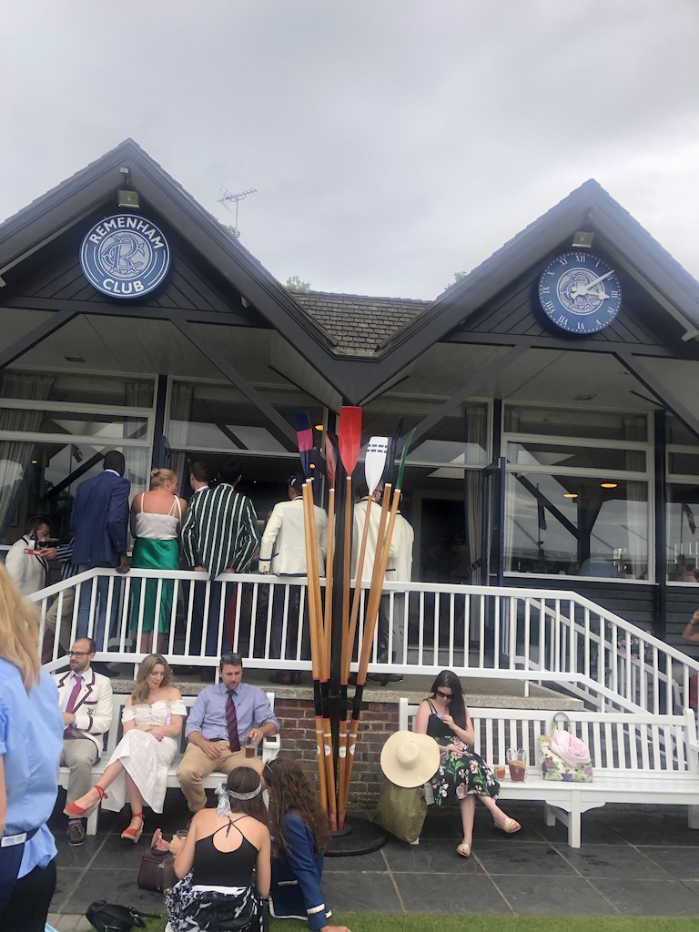 The next most exclusive “enclosure” is Remenham Club’s enclosure – where we spent our Saturday. The Club is composed of “founding clubs” of rowing in London – including Thames Rowing Club (est. 1860), which is how I got in. Similar dress code, but not as strict.