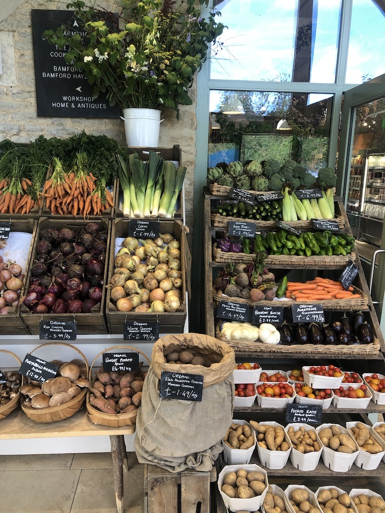 We had lunch at Daylesford, and did a little “hiking” around their farm. (Marked “D” on my nice map above.) Daylesford is an organic farm in the Cotswolds, which also has a few farm shops in London. There was a Daylesford close to our flat in Notting Hill, where we went about once a day because it is so great.