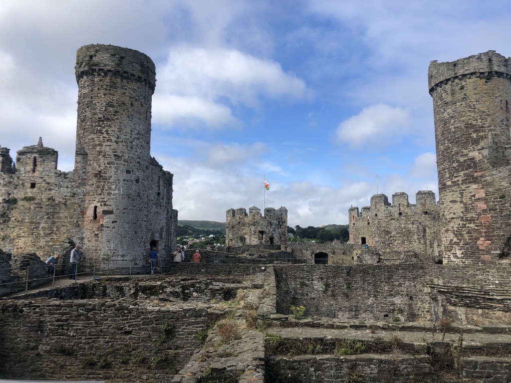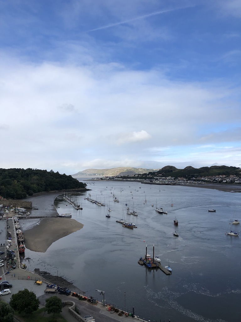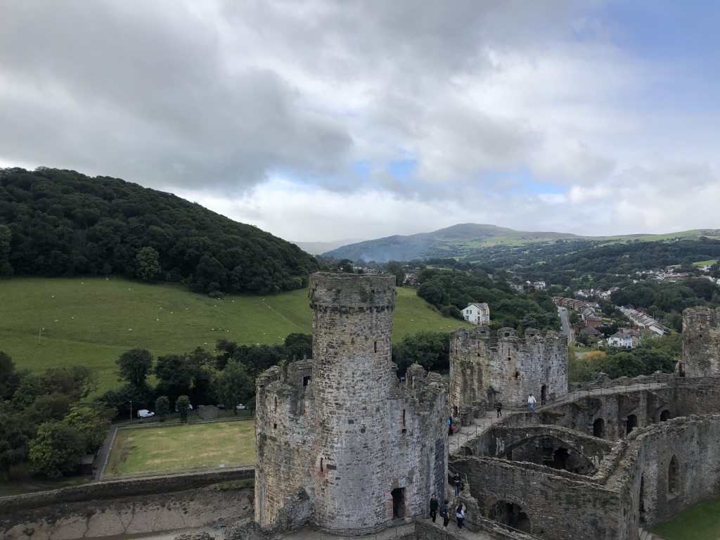 Conwy, where we stayed, sits at the mouth of the River Conwy. It is a small town of about 4,000. A huge castle, Conwy Castle, built around 1280 by Edward I, towers over the town. The castle is pretty rundown (as you might expect an almost 800 year-old castle to be), but the walls of the great hall and royal chambers are all still standing, and there are impressive views from the top of the towers. For example: